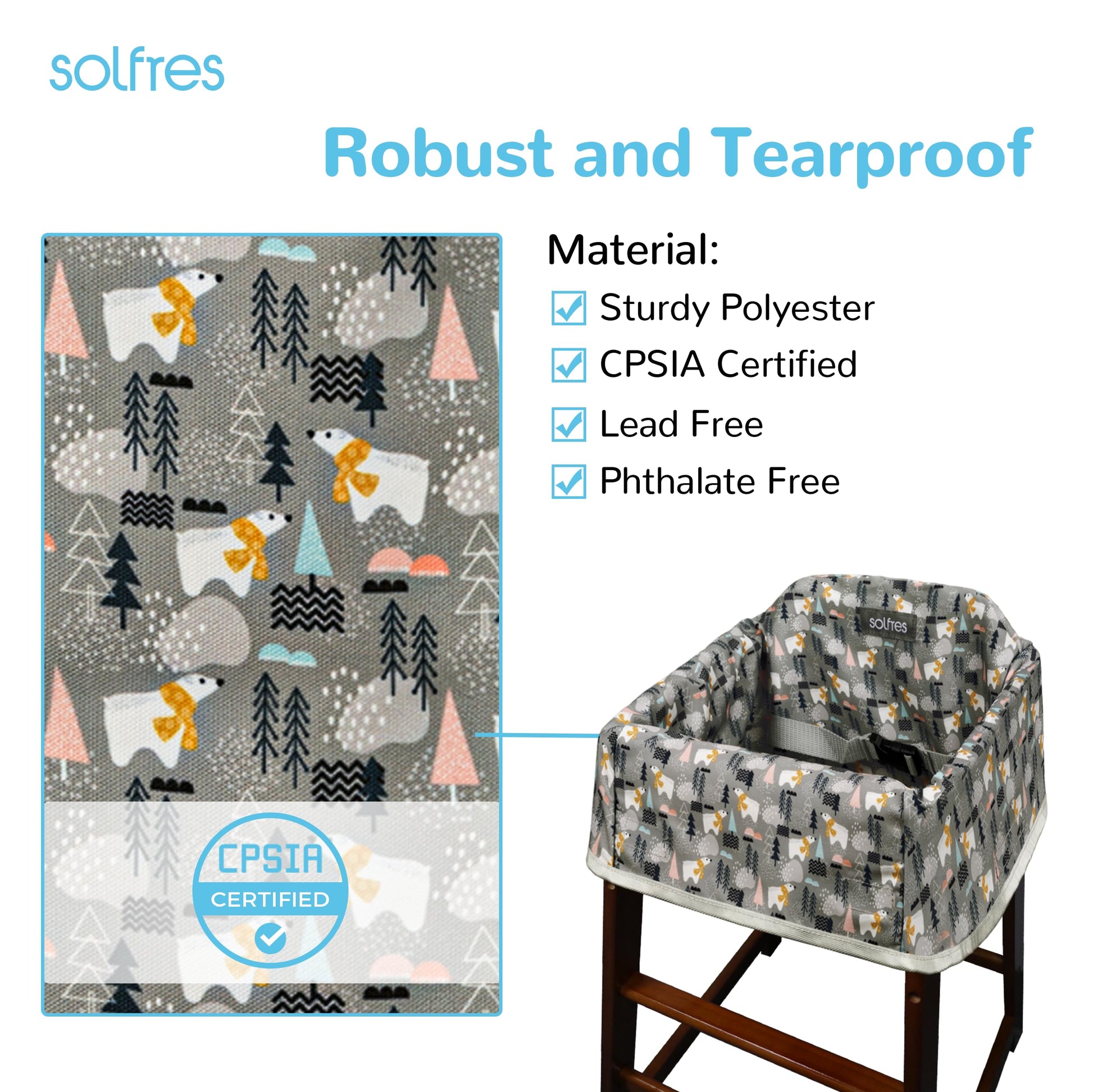 Dual-Belt Baby High Chair Cover, Upgrade Version, for Wooden or Restaurant High Chair, Sturdy and Robust Material, Waterproof Washable Stain and Slip Resistant, Blue Polar Bear