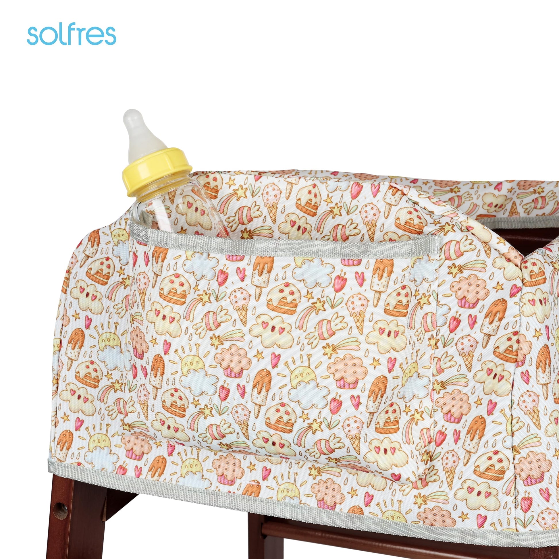 - [Extra Design Features] Never worry about the stains of sauce such as ketchup and peanut butter. A pouch built into the back of the high chair protector allows for objects, for example, baby bottles, to be stored in the back of the chair when in use.
