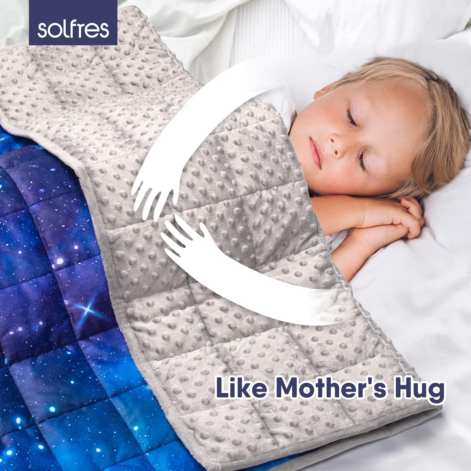- [ Feel Relaxed ] Weighted blanket imitates pressure like a mother's hug, which helps the kids to feel relaxed.
