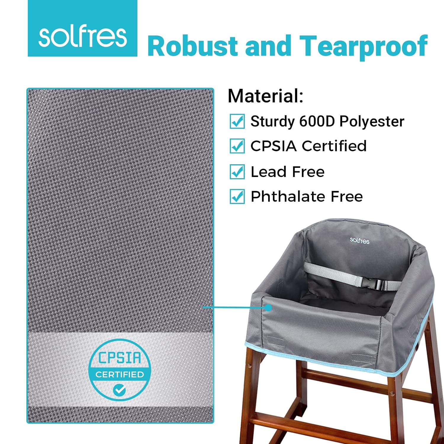 Solfres Dual-Belt High Chair Cover, Baby High Chair Cover, Upgrade Version, for Wooden or Restaurant High Chair, Sturdy and Robust Material, Gray