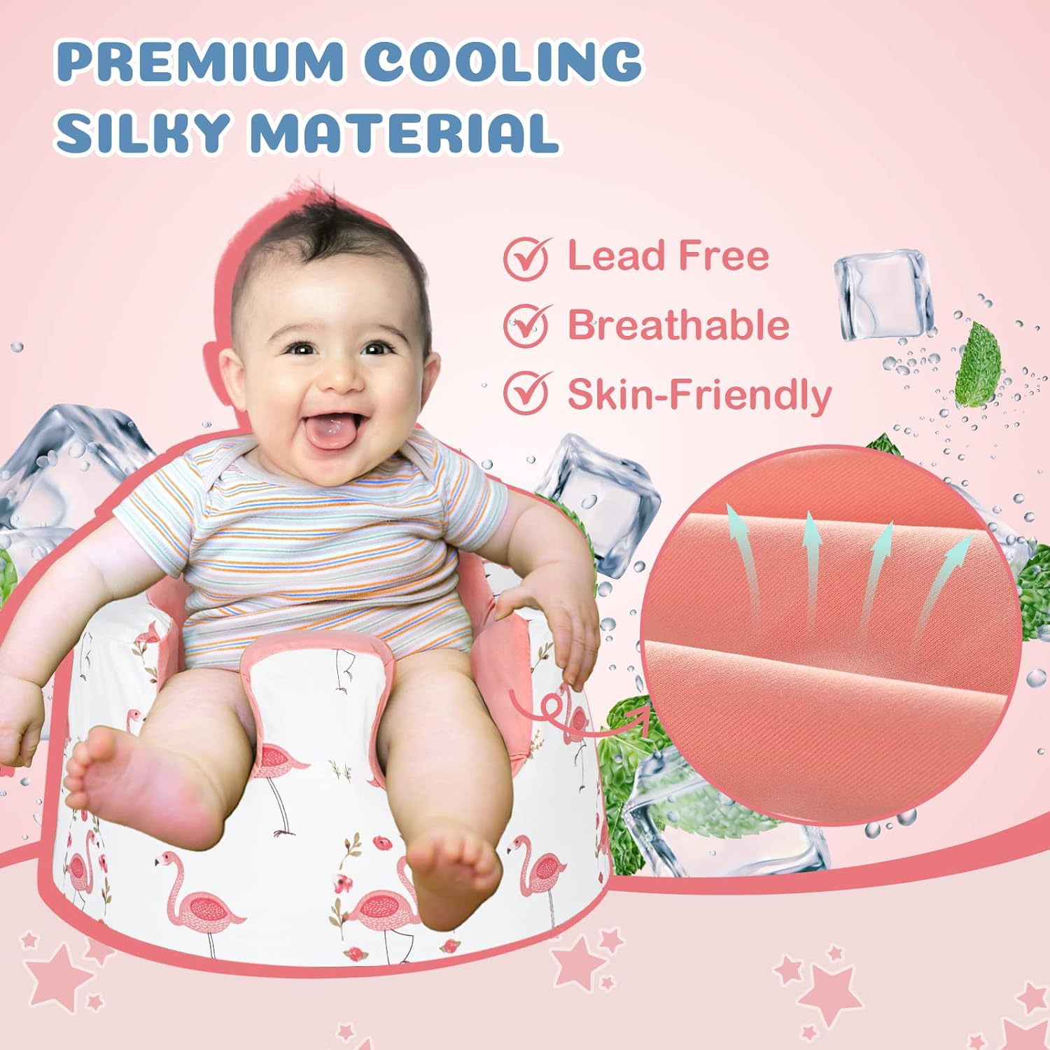 Solfres Seat Cover, Compatible with Bumbo Seat (Original), Soft and Breathable Summer Seat Cover, Washable Bumbo Seat Protector, Pink Flamingo